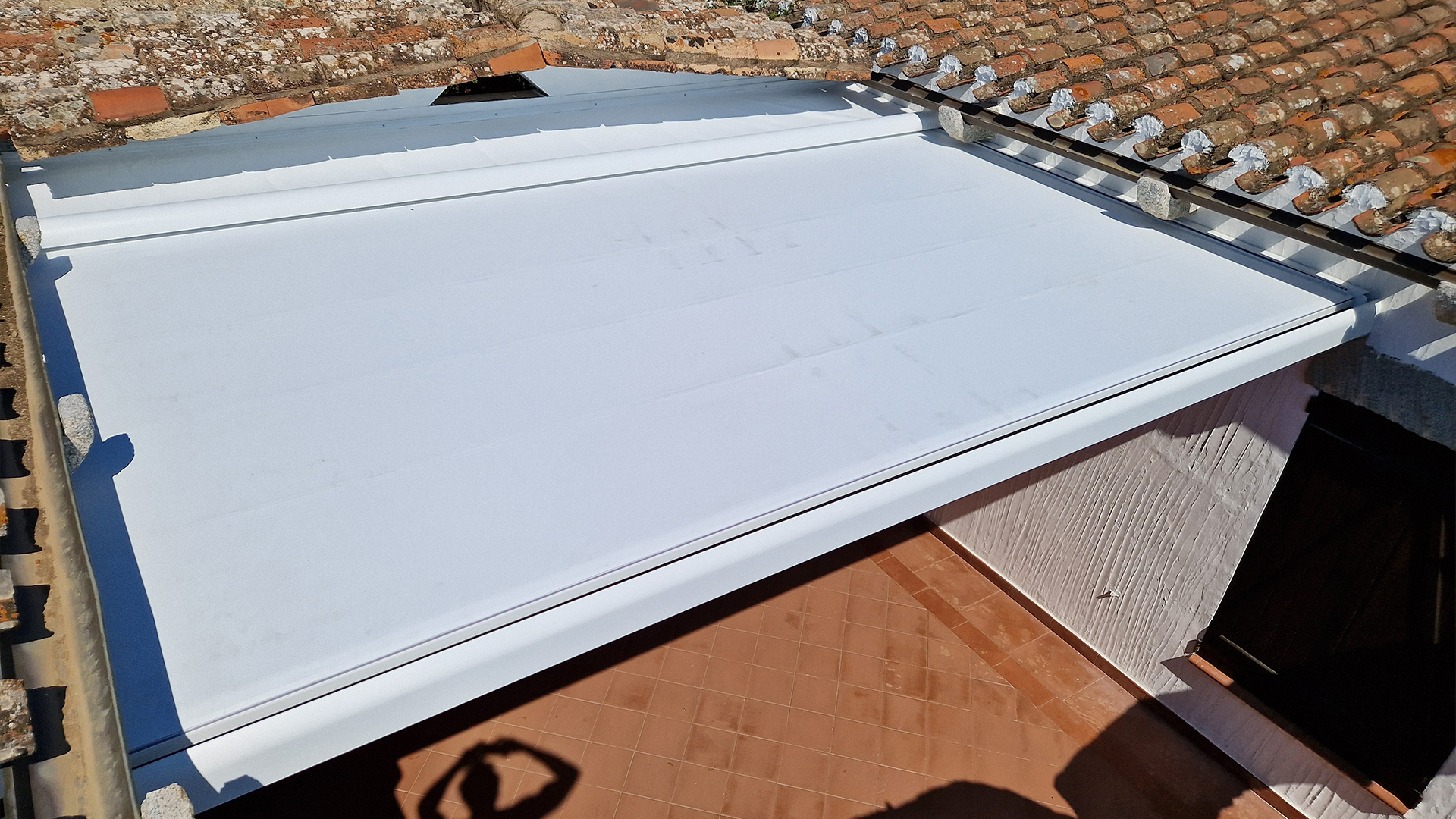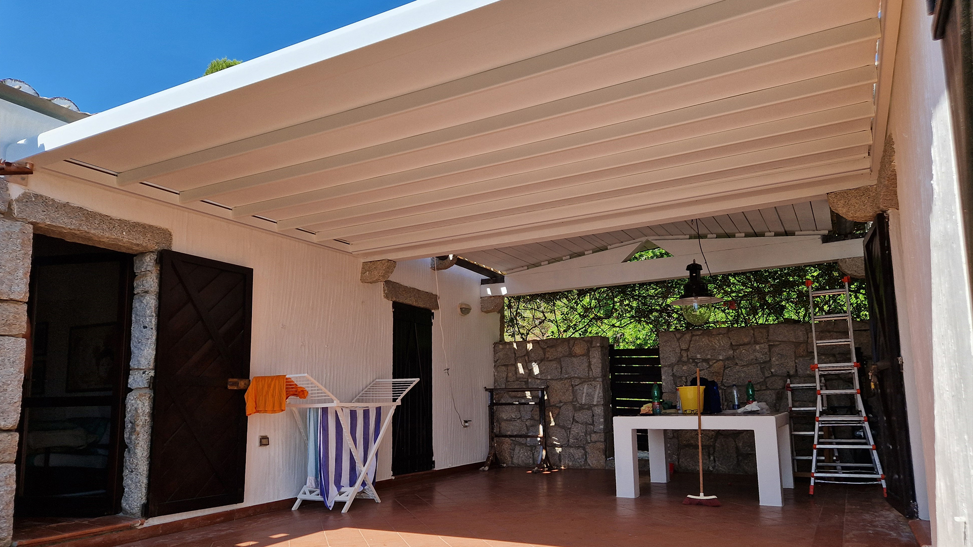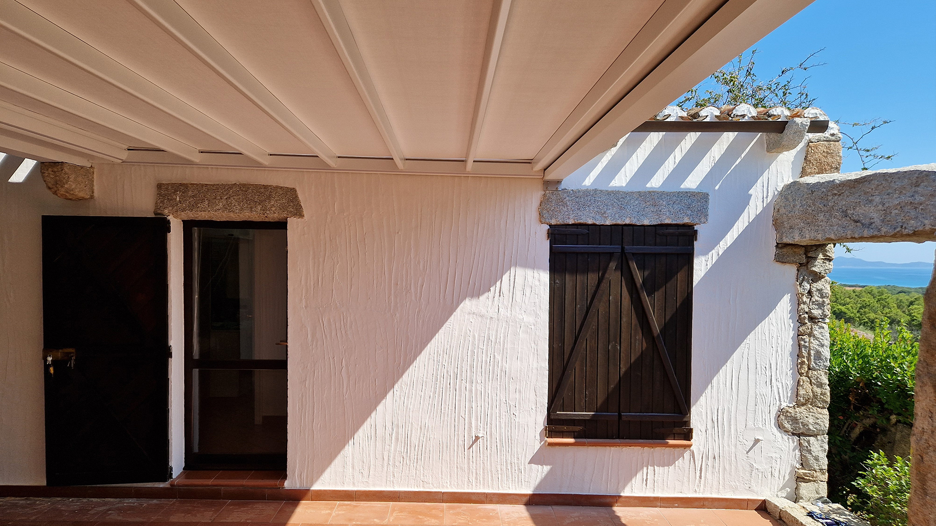 Abbiamo ideato una copertura solare (impermeabile per minime quantità) per sfruttare uno spazio aggiuntivo della piacevole vacanza con vista mare.