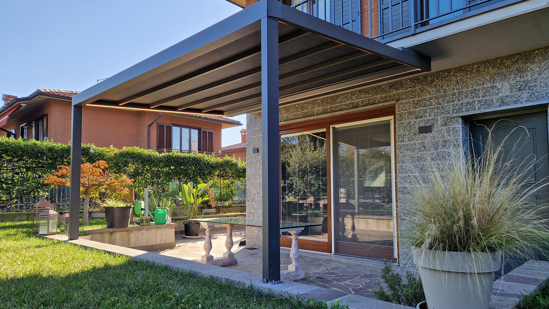 Si possono fissare le pergole a soffitto anzichè il classico fissaggio a parete? La risposta è… Dipende dal tipo di modello. REVER è disponibile anche in questa versione con box motore chiuso anche nel posteriore. Si possono avere le pergole anche in altre tonalità di colore nella copertura? REVER ha anche questa possibilità. Otto varianti colore a vostra disposizione.